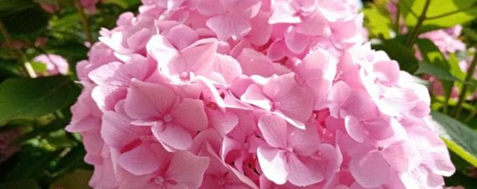 Den storbladede hortensia, som blomstrer med blå og lyserøde hætter, sætter blomsterknopper for enden af sidste års skud. En streng snefri vinter uden
