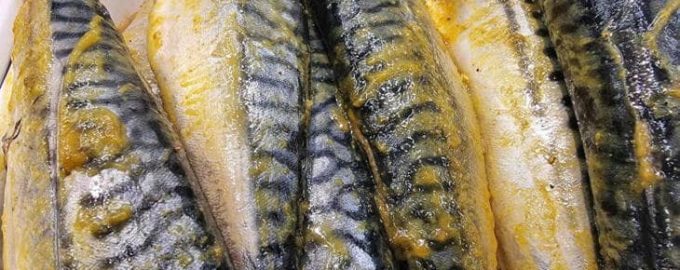 I løbet af denne tid vil saltet trække overskydende fugt ud, gøre kødet tykkere, og krydderierne vil trænge ind og forberede fisken til hurtig stegning eller bagning uden for meget besvær. Sådan en makrel skal serveres med noget syrligt, som skygger for dens fedtindhold: med citronskiver, syltede løg, kapers eller en sauce baseret på yoghurt med dild.