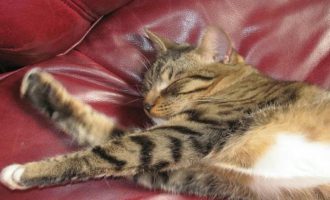 Du går ud på badeværelset og finder din kat krøllet sammen i vasken.